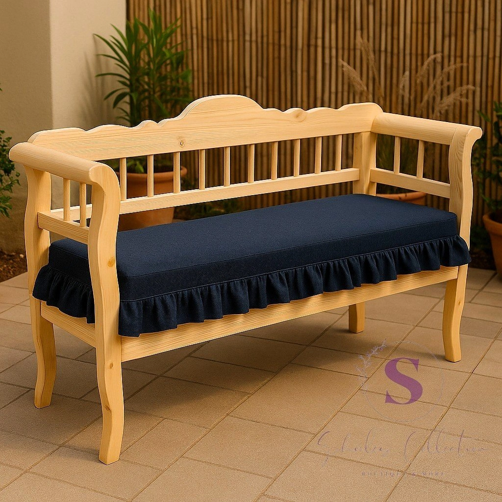 El Yapımı Buldan Yıkanmıs Keten 4 Tarafı Fırfırlı Lacivert Keten Bank Minderi 110x50x5cm Lacivert