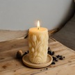 El Yapımı Dekoratif Sütun Mum, Çiçek Oymalı Soya Mumu