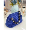 El Yapımı Gece Mavisi Yün Örgü El Çantası Mavi