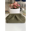 El Yapımı Haki Renk Pileli Örgü El Çantası Haki