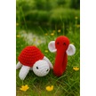 El Yapımı Kırmızı Çıngıraklı Set Fil Ve Kaplumbağa %100 Pamuk, Bebekler İçin Güvenli Beyaz - Kırmızı