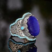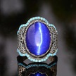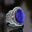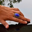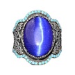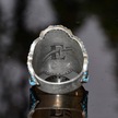 El Yapımı Mavi Kedi Gözü Yüzük Turkuaz Yapay Taş İle - 925 Ayar Gümüş Erkek Takısı Gümüş