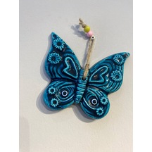 El Yapımı Nazar Boncuğu, Duvar Dekorasyon Ürünü, Seramik, El İşçiliği, Turkuaz Renkte Kelebek Desenli -