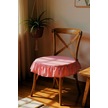 El Yapımı Yuvarlak Buldan Yıkanmıs Keten Fırfırlı Sandalye Minderi Pembe Pembe