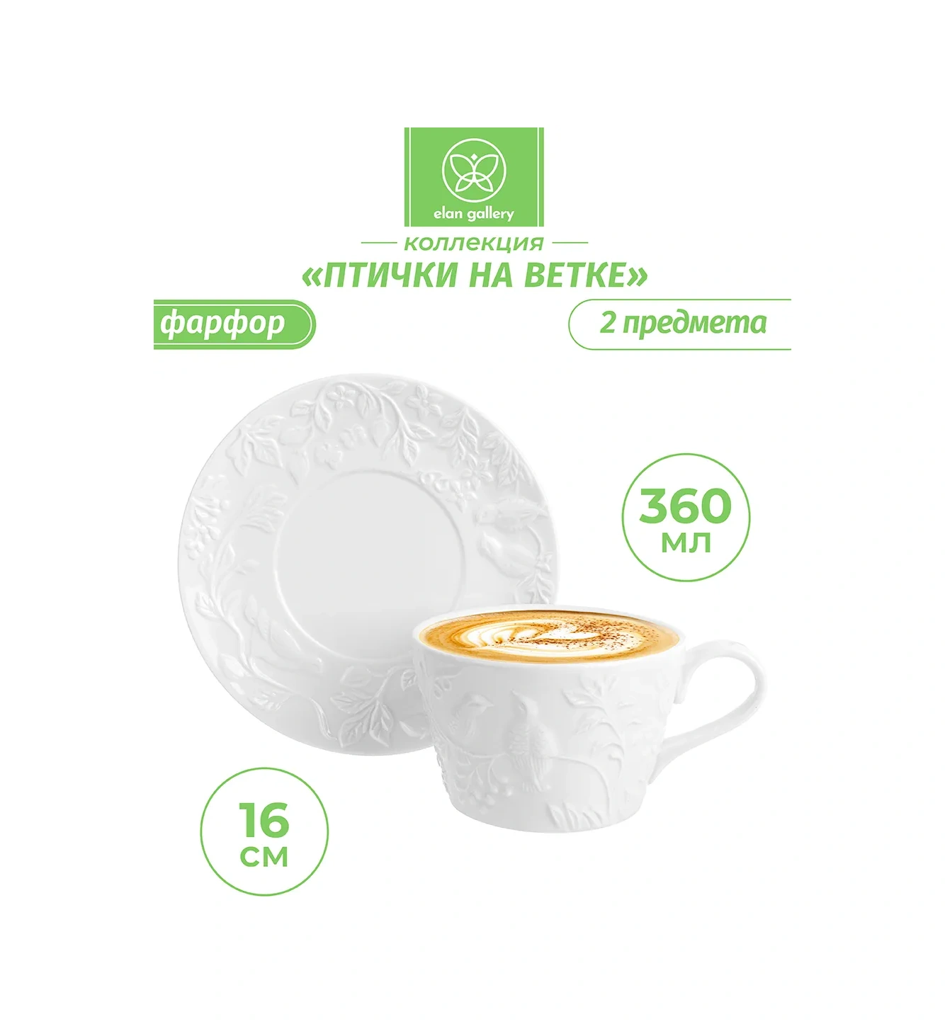 Elan Gallery Çay Takımı "ağaç Dalında Kuşlar", 360 Ml 5677316 Beyaz
