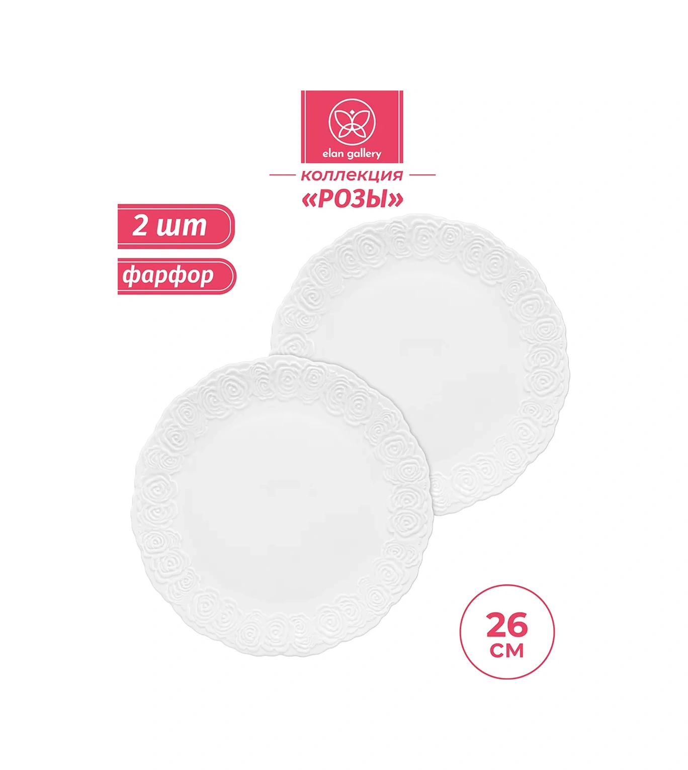 Elan Gallery Güller Figürlü Tabaklar, 2 Adet, 26,5 Cm 340585461 Beyaz