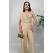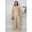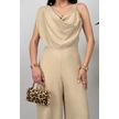 Élan Kadın Taş Drapeli Detaylı Tulum Dokulu Kumaş Şıklığı Taş