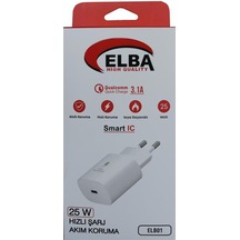 Elba Elb42 Beyaz 25w Şarj Kafa+ İphone Uyumlu Kablo Usb-c Pd3.0-qc4.0 Akım Koruma-hızlı Şarj-