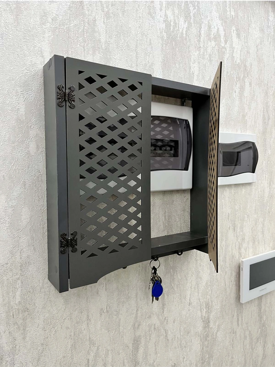 Elektrik Pano Düzenleyici Duvar Düzenleyici Ahşap Dekoratif Antrasit Kutu Anahtarlık Baklava 41 X 41