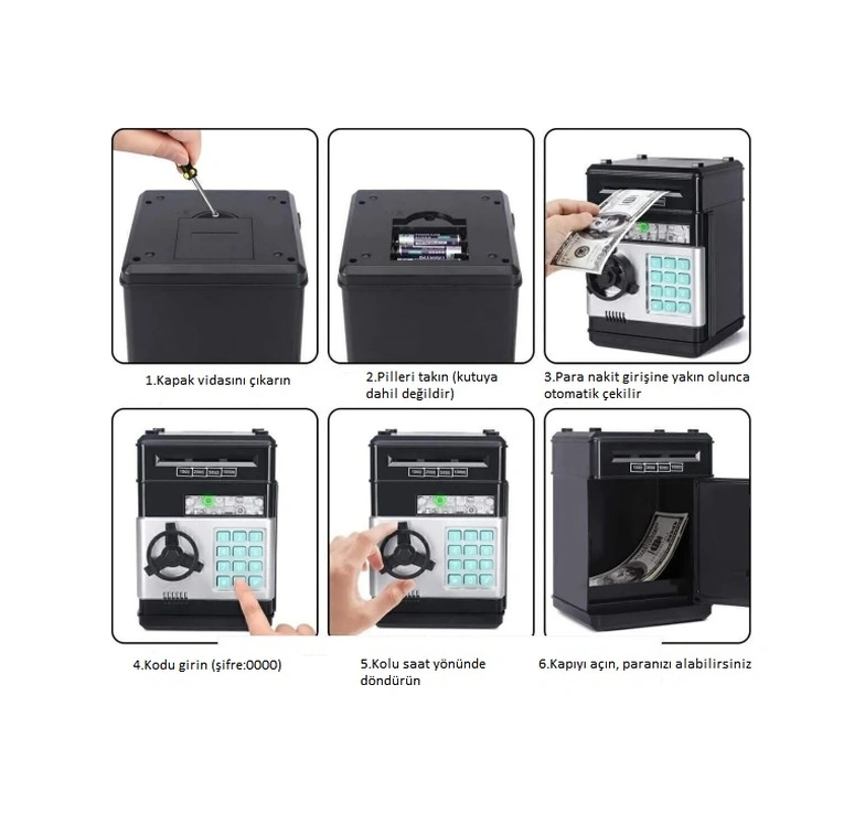 Elektronik Şifreli Kasa Otomatik Kağıt Para Alan Atm Kumbara 5256