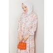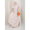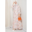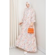 Elera Desenli Yarasa Kol Tesettür Elbise 1572 - Pembe Pembe