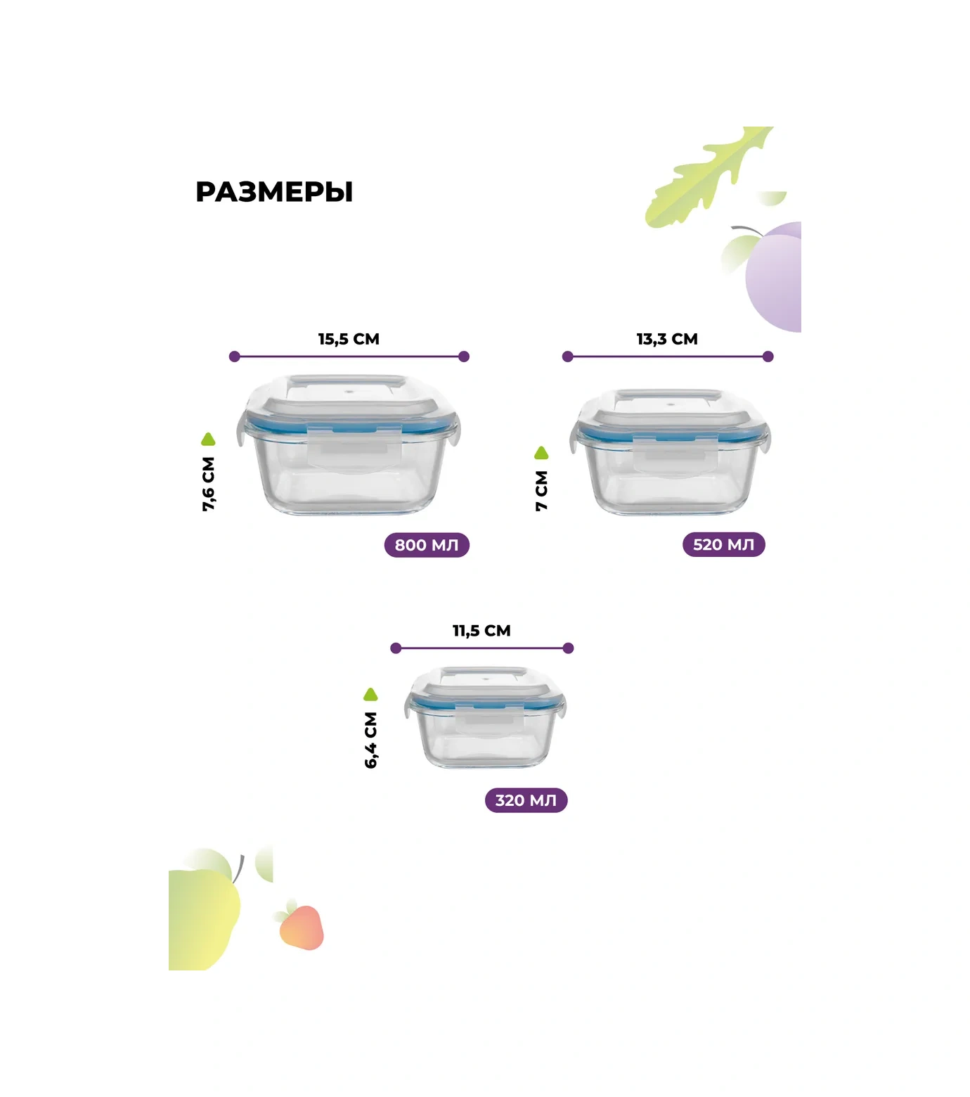 Eley Kapaklı Cam Saklama Kapları Seti 320, 520, 800 Ml 15222210 Beyaz