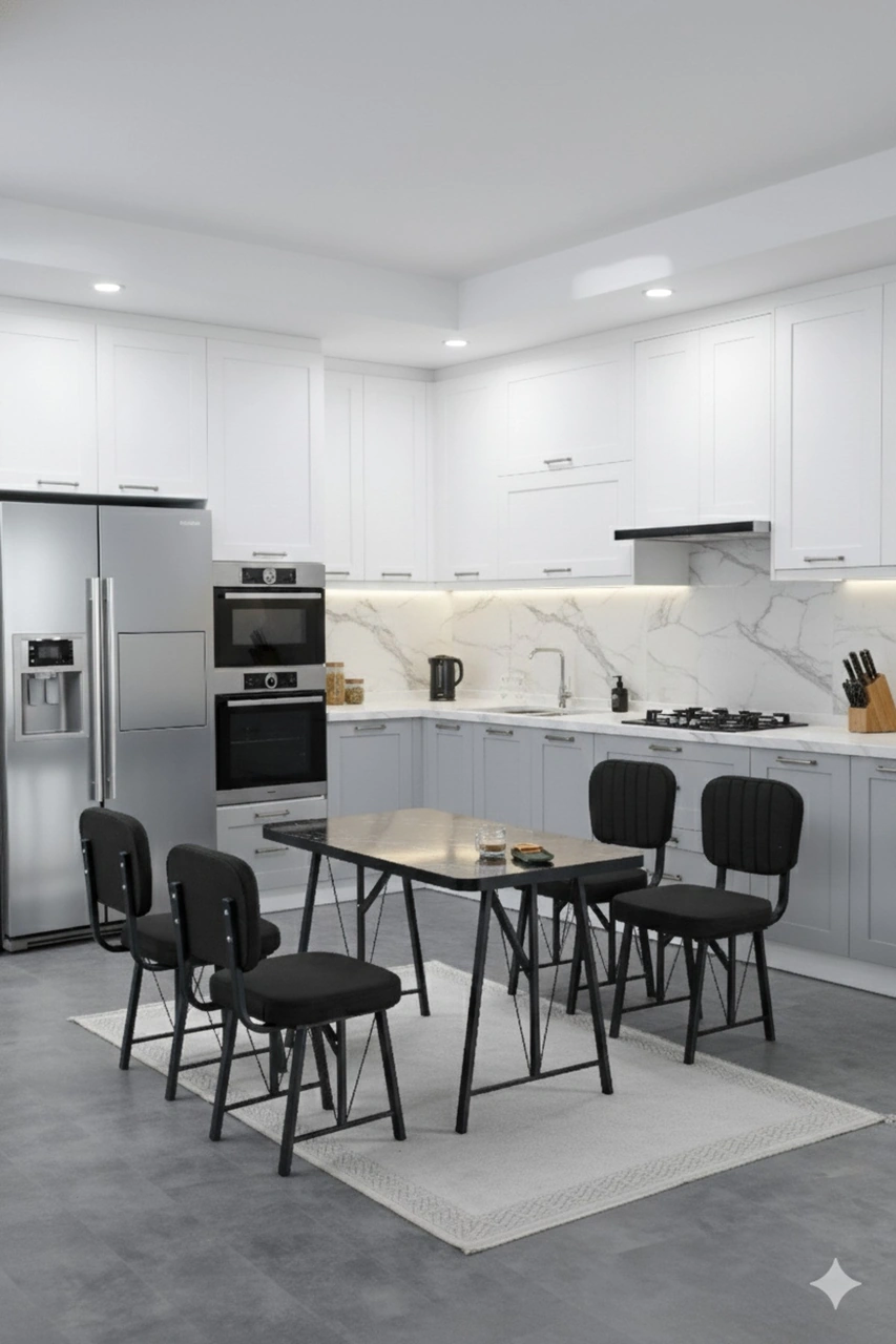 Elfin 70x110cm Sabit Siyah Yemek Masası, Yemek Masası Takımı, Mutfak Masası, 4 Siyah Sandalye Siyah
