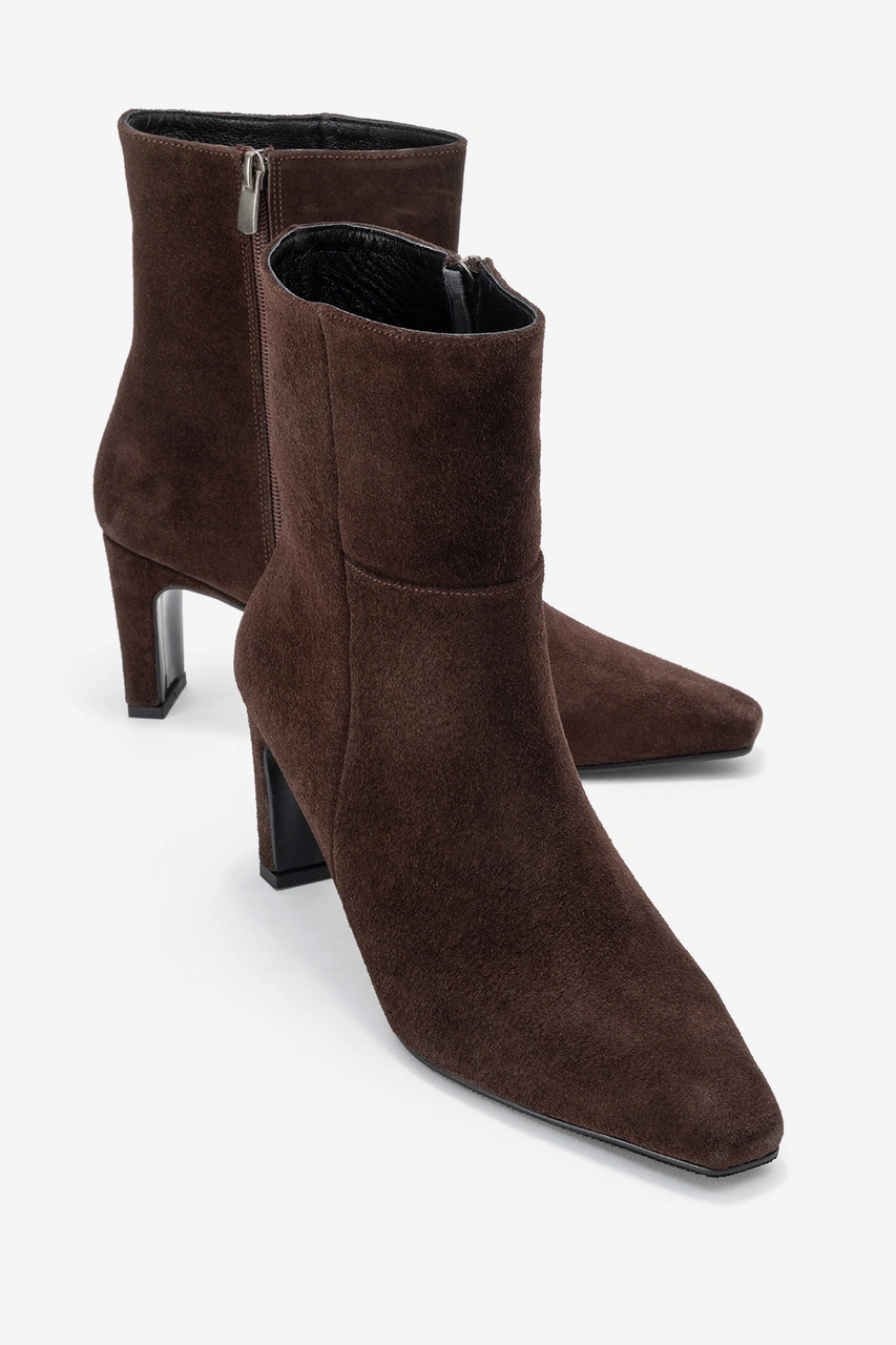 Elıas Kahverengi Süet Hakiki Deri Kadın Blok Topuklu Bot Süet Kahve