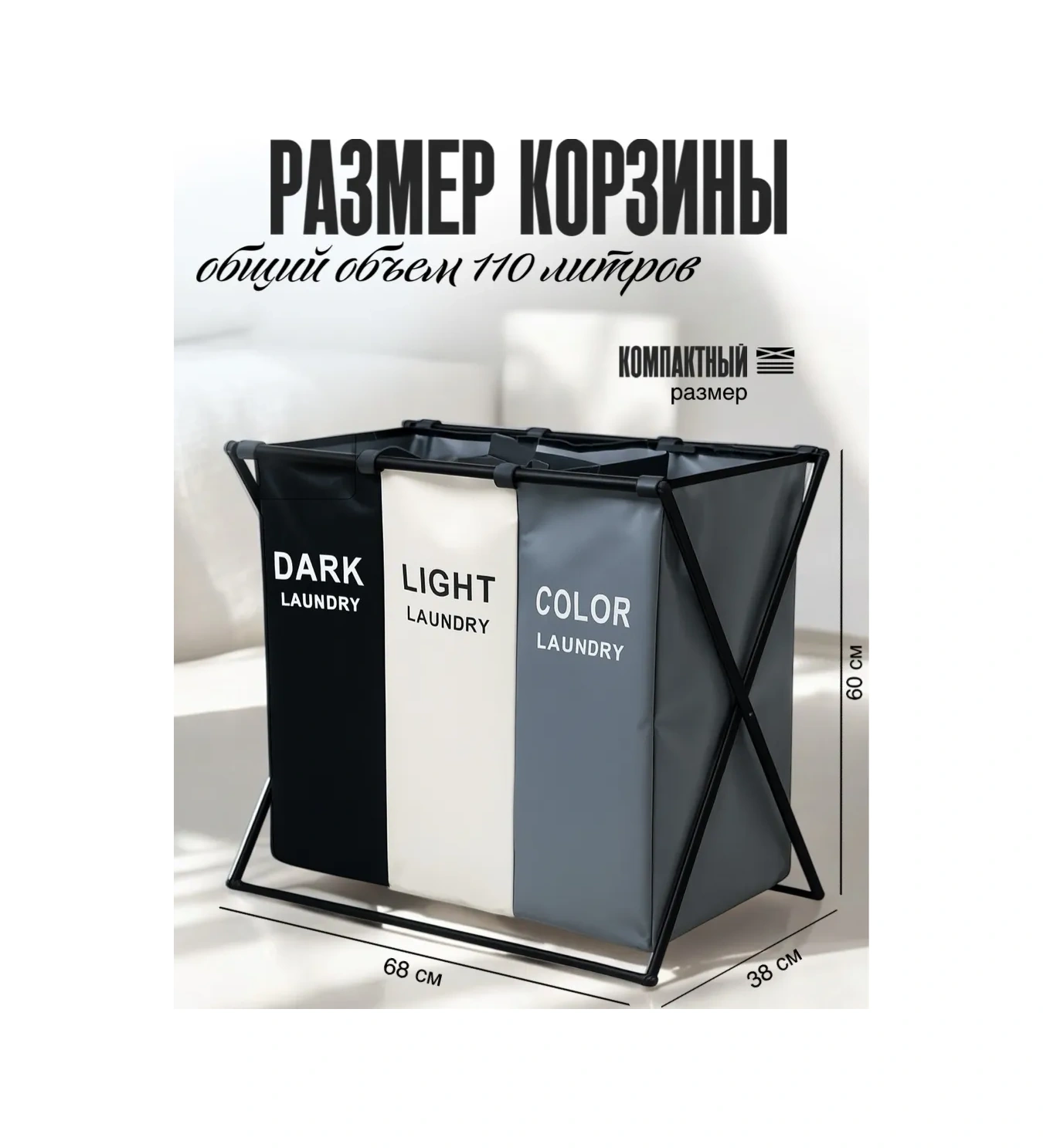 Eligio Katlanabilir Çamaşır Ve Oyuncak Sepeti 3 Bölmeli 215499260 Siyah