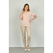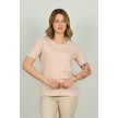 Ella Camelia Kadın Çizgili Bisiklet Yaka Kısa Kol Bluz 1e027 Pudra