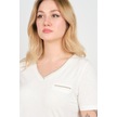 Ella Camelia Kadın Simli Süs Cepli V Yaka Kısa Kollu Bluz 24e038 Ekru Ekru
