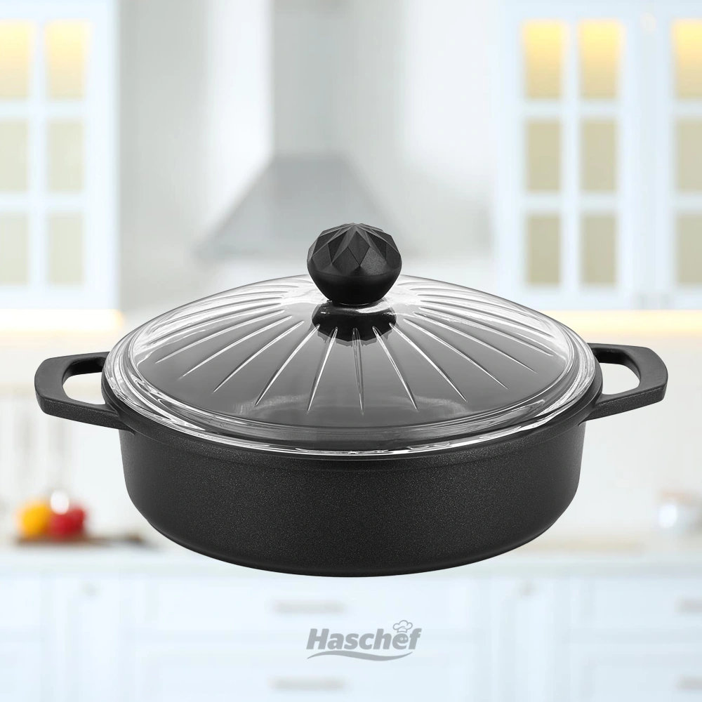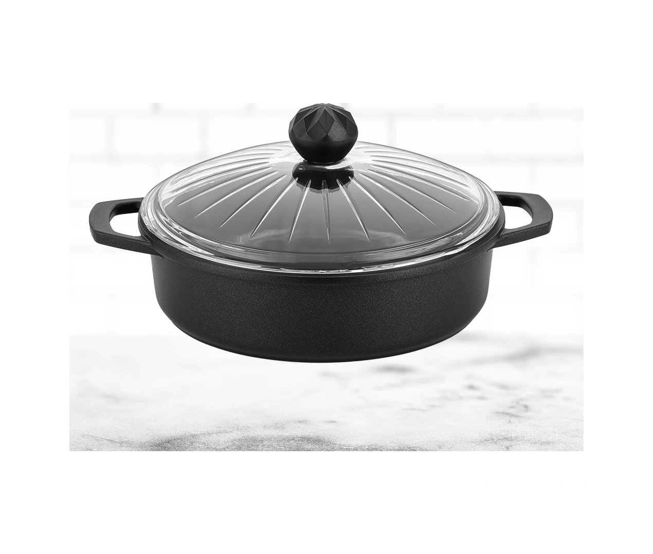 Elmas Basık Tencere - Kristal Tava 26 Cm Siyah