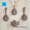 Elmas Montürlü Damla Taşlı Damla Set Rose Gold - Gümüş