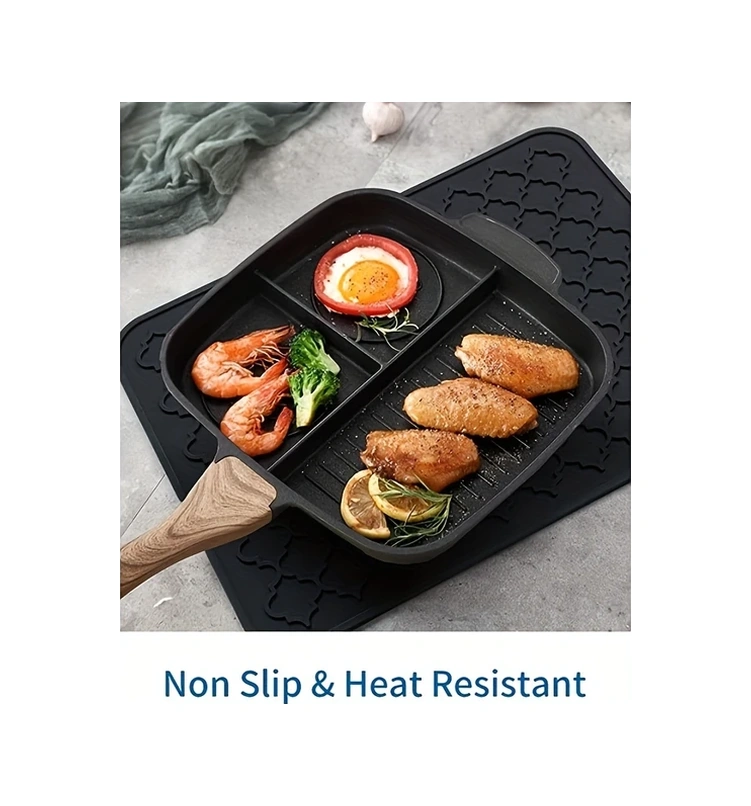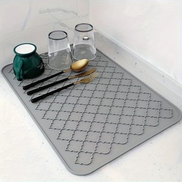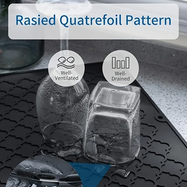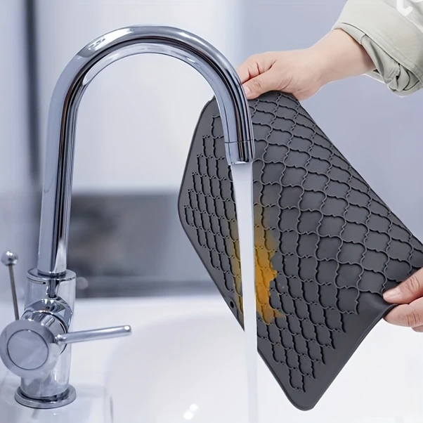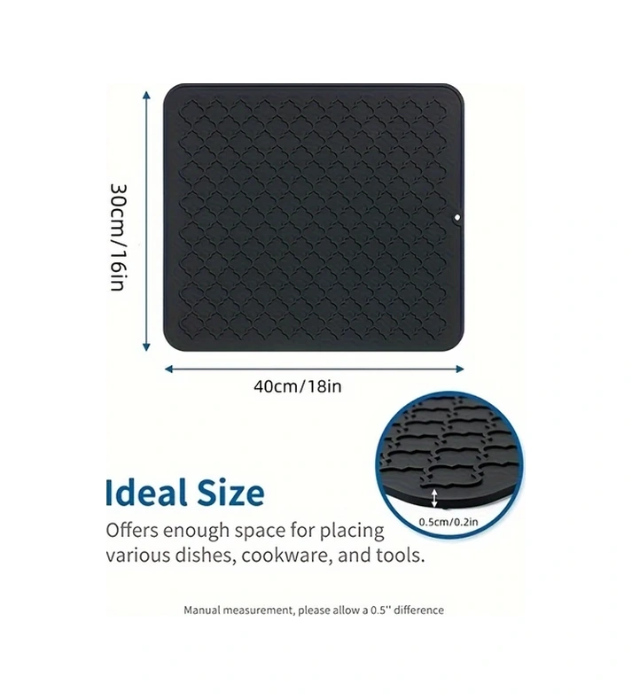 Elmpaly 1 Adet Desenli Silikon Sünger Kurutma Paspası, Anti-kaydırıcı Isıya Dayanıklı Siyah Mutfak Tezgahı Altlığı