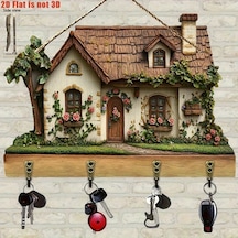 Elmpaly A 2d Düz Fonksiyonel Ahşap Anahtarlık 4 Metal Kancalı Duvar Dekoru Koridor Oda Köşk Dört Mevsim