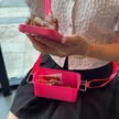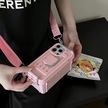 Elmpaly İphone 15 Pro Max Bright Pink Çapraz Taşımalı Depolama Telefon Kılıfı
