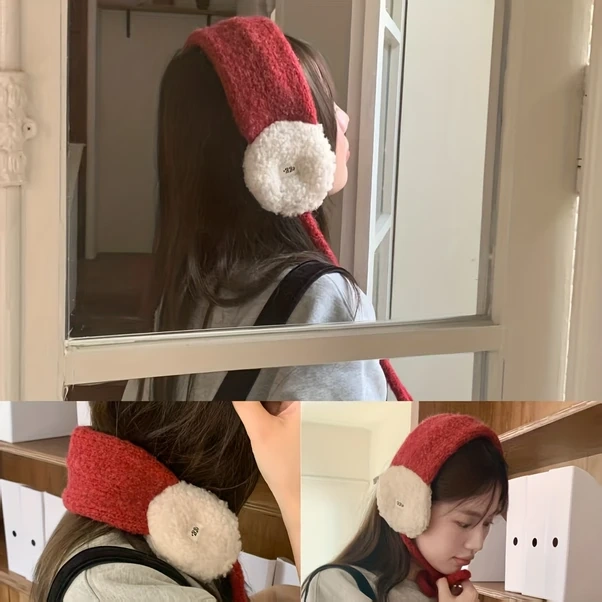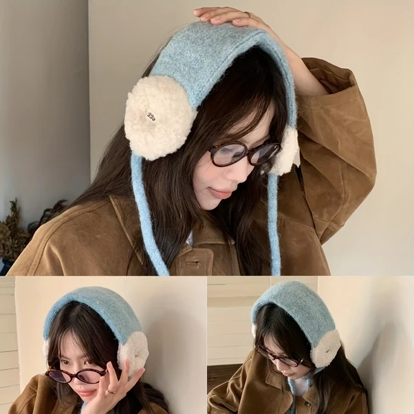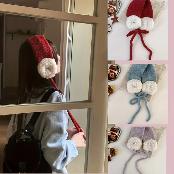 Elmpaly Mor Renk Bloklu Kadın Kışlık Polar Kulaklık Ayarlanabilir Kayak Kulak Koruyucu