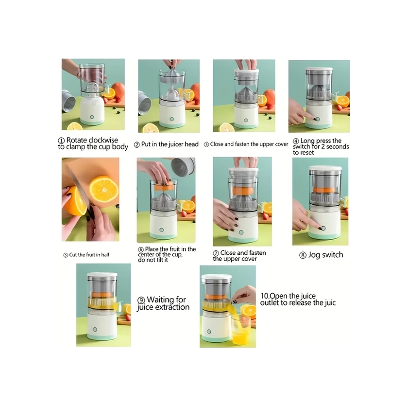 Elmpaly Portakal Beyaz Usb Şarjlı Portakal Sıkacak Makinesi Otomatik Sıkma Verimli Meyve Suyu