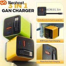 Elmpaly Sarı 65w Hızlı Şarj Cihazı 3 Cihaz Aynı Anda Şarj Hızlı Şarj Tip Çıkışı Taşınabilir