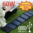 Elmpaly Yeni Altı Katlanır 60w Taşınabilir Güneş Enerjili Şarj Cihazı - Usb 5v Çıkışlı, Kamp Ve Seyahat İçin Powerbank, Fan, Fener