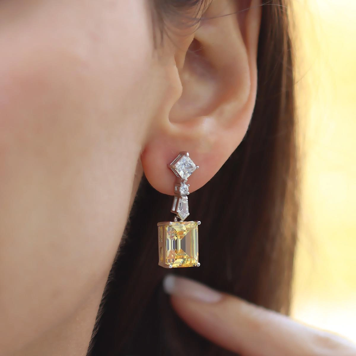 Emerald Sitrin Gümüş Küpe Gümüş