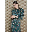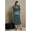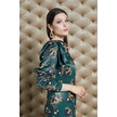 Emprime Desenli Saten Dokulu Midi Elbise Şık Ve Modern Stil Yeşil