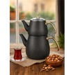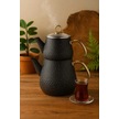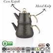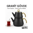 Enashop Granit Kaplama Gold Kulplu Cam Kapak Çaydanlık Siyah Siyah