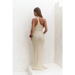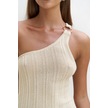 Endah Halka Detaylı Asimetrik Bej Uzun Triko Elbise Bej