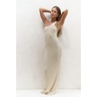 Eteği Volanlı Uzun Elbise Kırık Beyaz