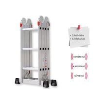 Endokon Platformlu 3,46 Metre - 12 Basamaklı Katlanır Akrobat Merdiven - Büyük Menteşe - Kalın Profil