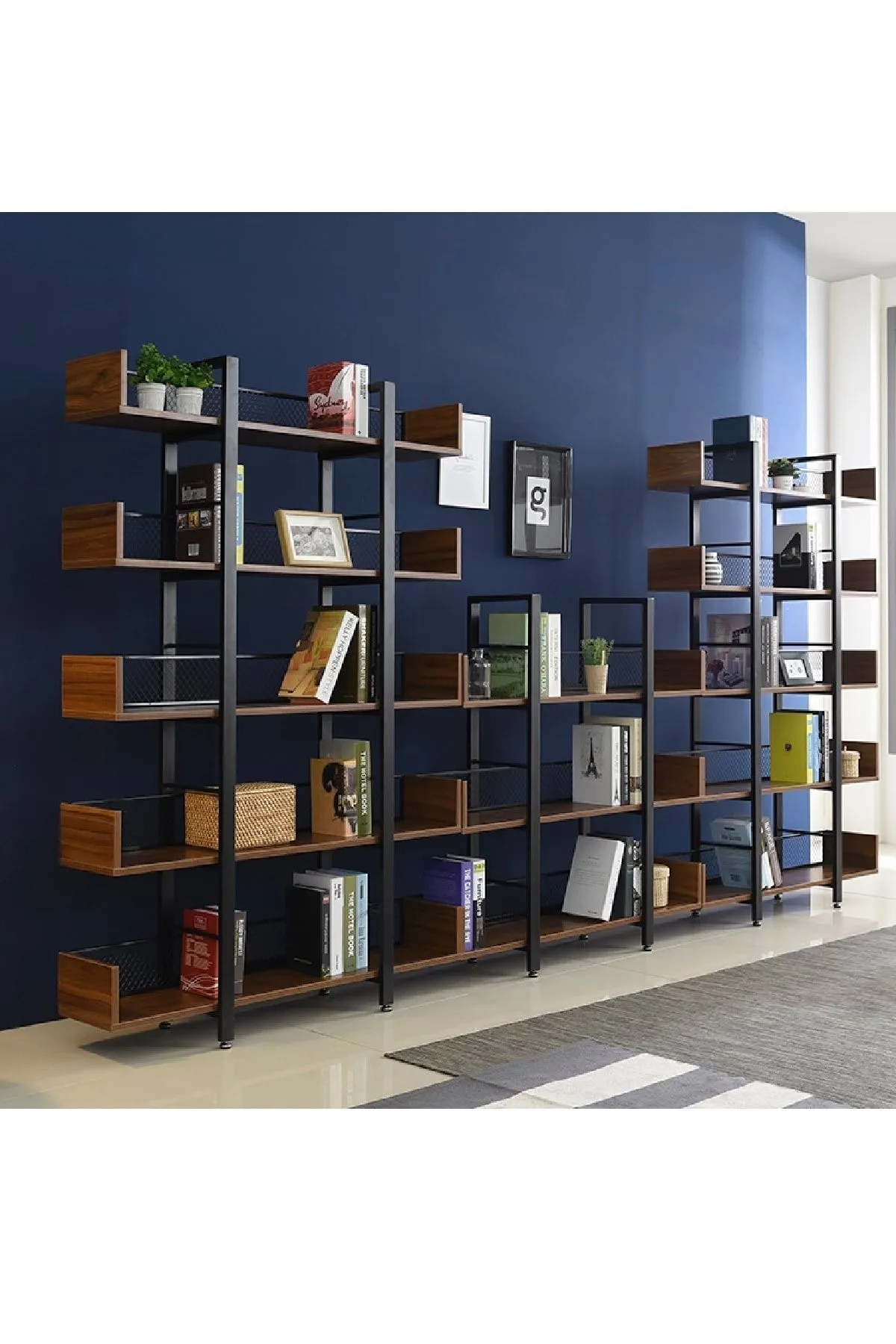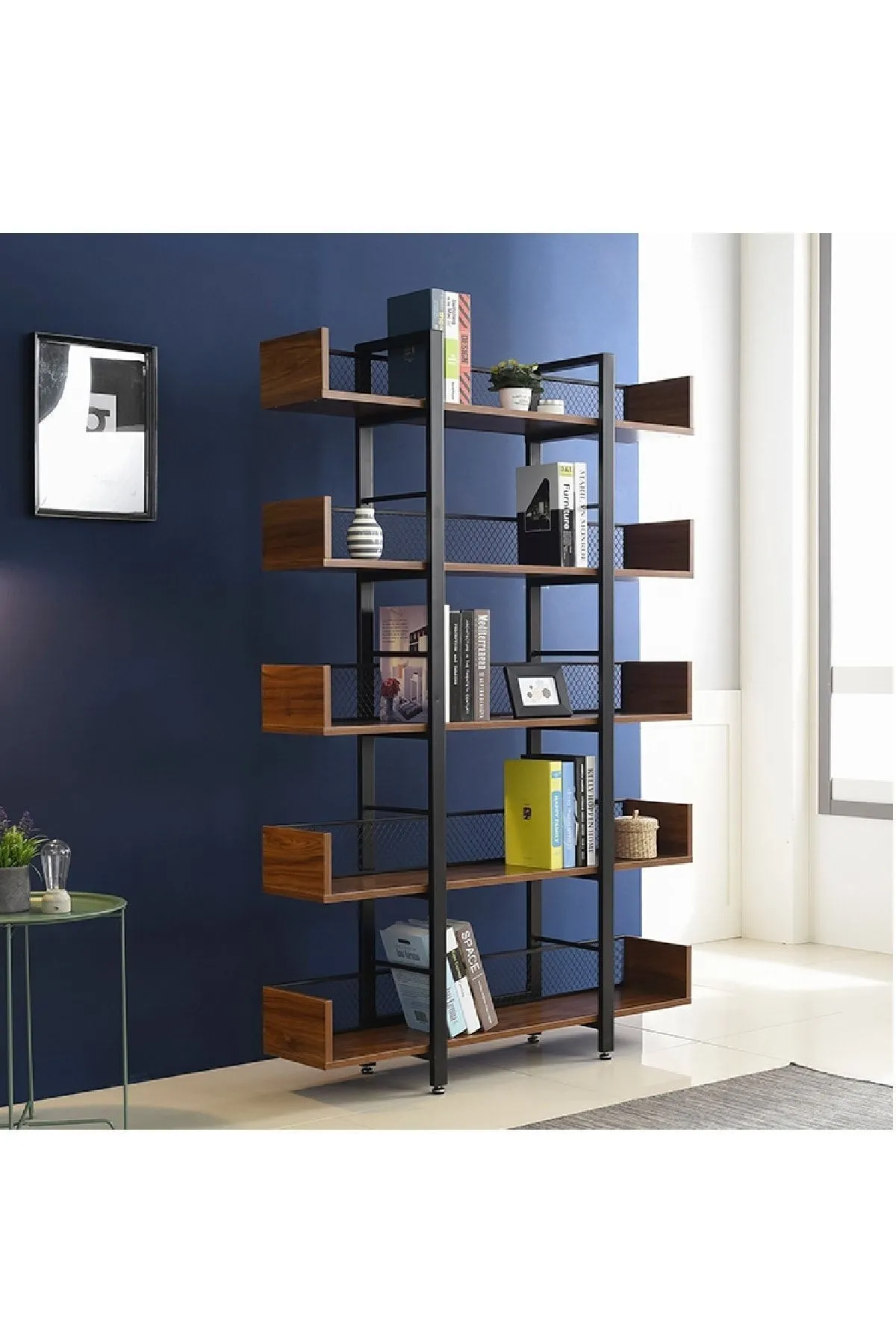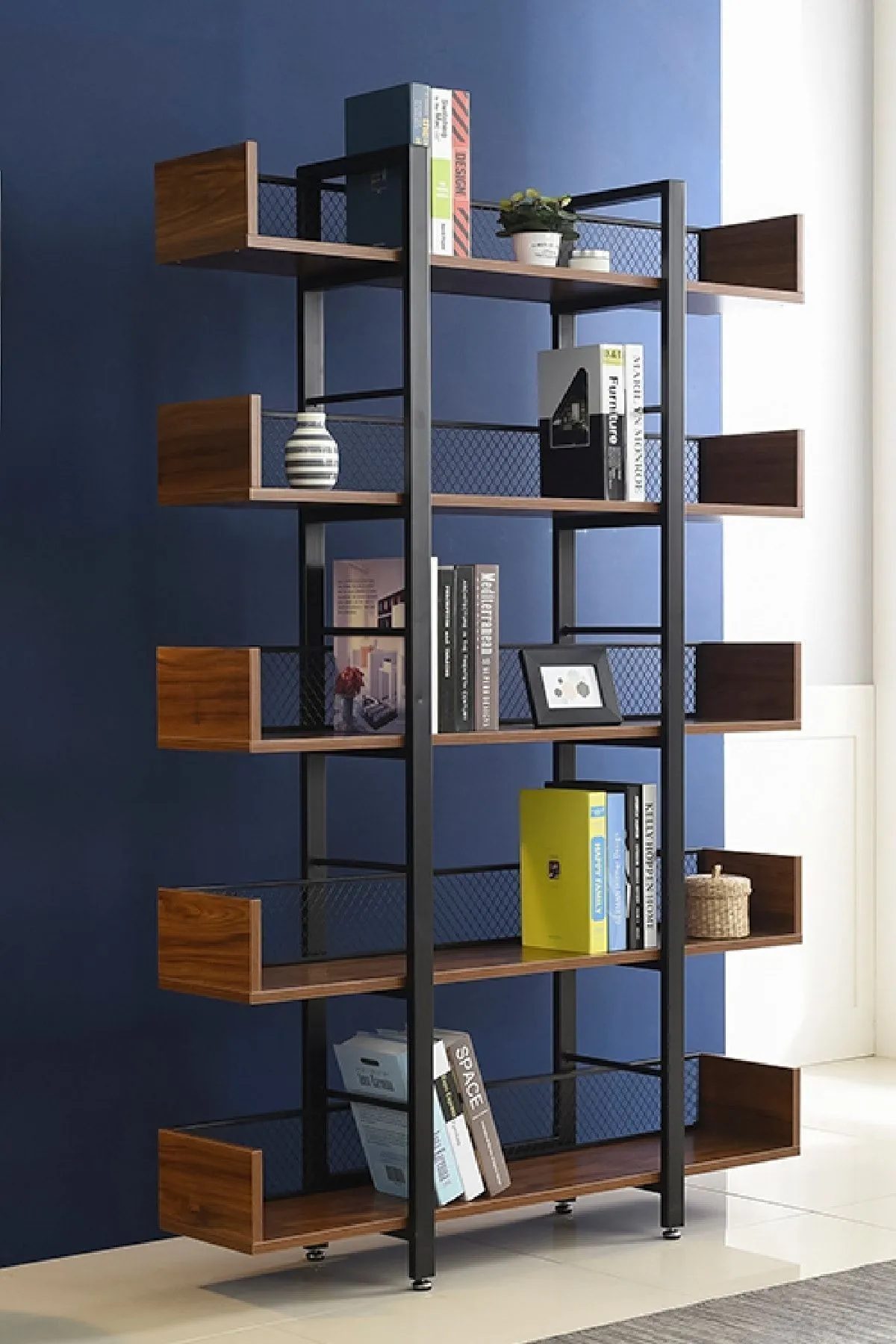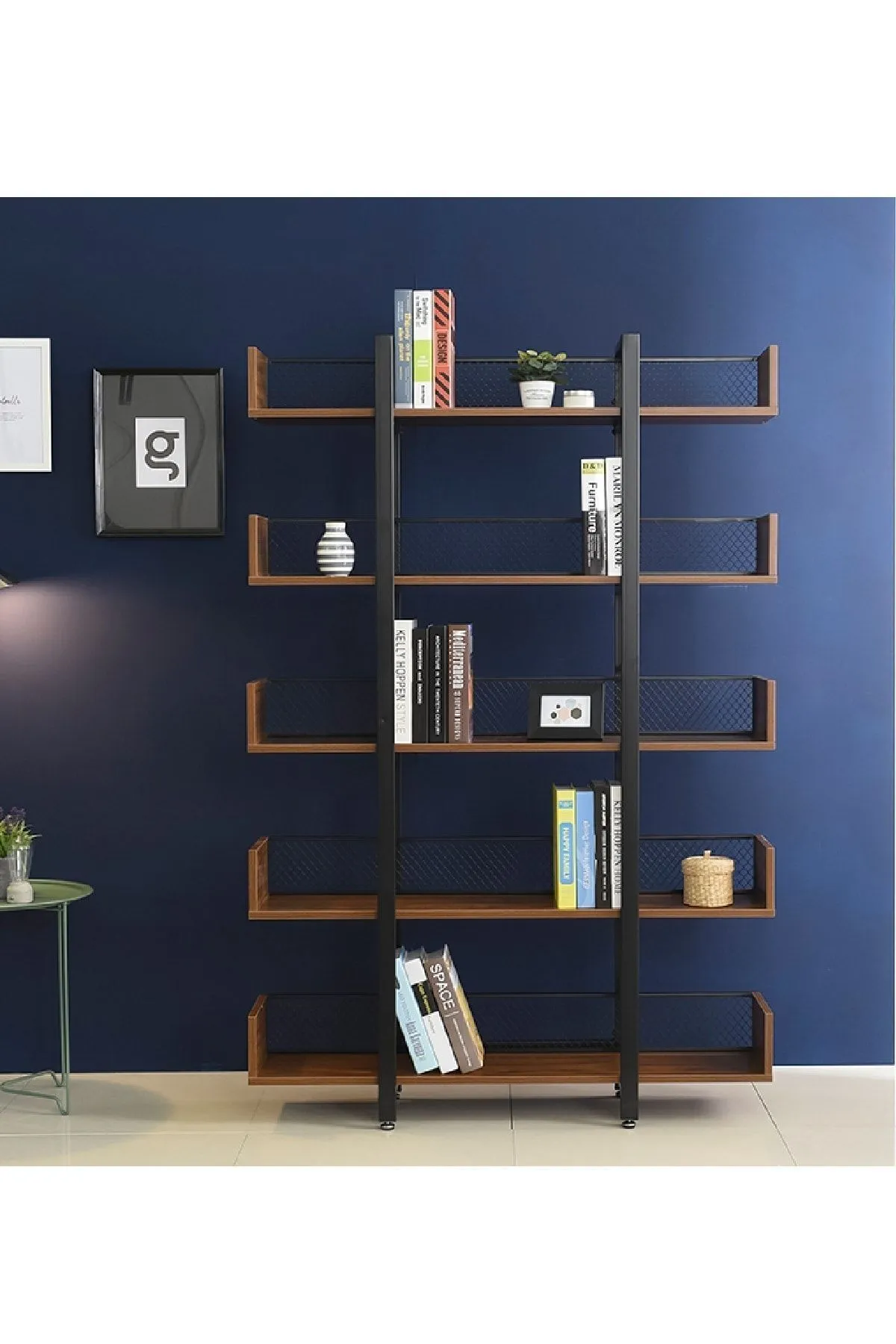 Endüstriyel Tasarım 5 Katlı Tel Detaylı Kitaplık-aksesuar Rafı-çiçeklik-çok Amaçlı Raf Ceviz-siyah