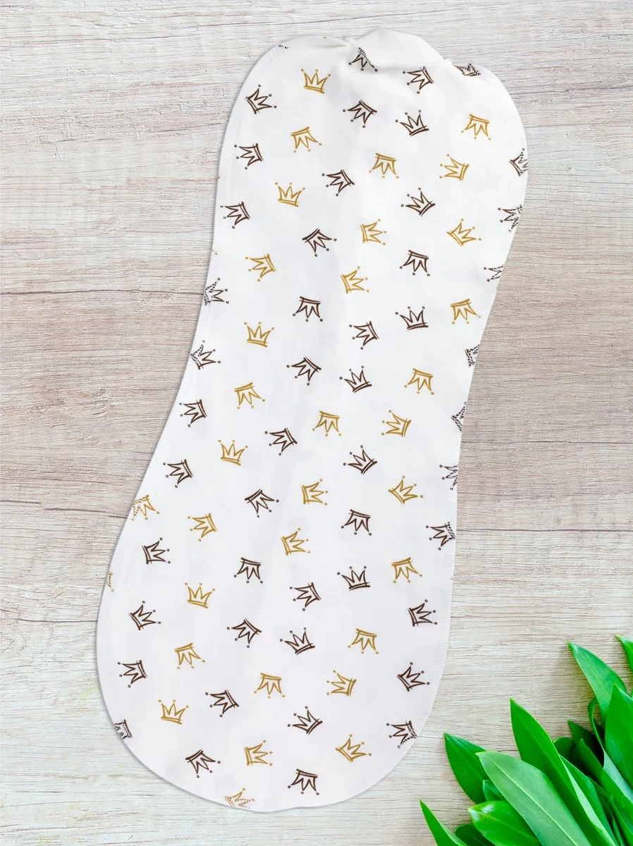 Yenidoğan Pırıltı Taç Nakışlı İnci Delüks Kundak Bebek Battaniyesi Ekru Ekru