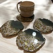 Epoksi Reçine Bardak Altlığı - 4'lü Takım - Koyu Yeşil Ve Altın Glitter - Çap: 12 Cm Koyu Yeşil