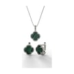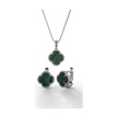Erdobia 925 Ayar Yeşil Kaplangözü Taşlı Rodyum Yonca Kolye Küpe 2'li Gümüş Set-takım
