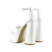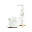Erkan Saçmacı Celine İnci Beyaz Önü Açık Çapraz Bantlı Çift Platformlu Kalın Topuklu Abiye Gelin Ayakkabısı