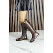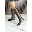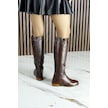 Erkan Saçmacı Kahverengi Hakiki Dana Derisi Metal Aksesuarlı Fermuarlı Yuvarlak Burun Kalın Topuklu Çizme Kahverengi