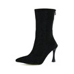 Erkan Saçmacı Nell Siyah Süet Taşlı Sivri Burun Fermuarlı İnce Topuklu Abiye Yarım Çizme Siyah