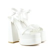 Erkan Saçmacı Whitney İnci Beyaz Sedef Önü Arkası Açık Çift Platformlu Bantlı Abiye Gelin Ayakkabısı