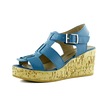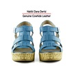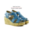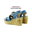 Erkan Saçmacı Xena Mavi Hakiki Dana Derisi Mantar Taban Görünümlü Dolgu Topuklu Gladyatör Sandalet Mavi