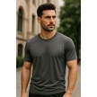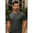Erkek %100 Pamuk Slim Fit Sporcu Tişört Basic Bisiklet Yaka Kısa Kollu T-shirt Gri