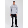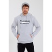 Erkek 3 İplik Pamuklu İçi Polarlı Baskılı Regular Fit Kapüşonlu Kanguru Cepli Gri Sweatshirt Gri