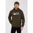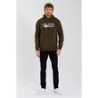 Erkek 3 İplik Pamuklu İçi Polarlı Baskılı Regular Fit Kapüşonlu Kanguru Cepli Haki Sweatshirt Haki
