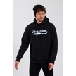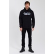 Erkek 3 İplik Pamuklu İçi Polarlı Baskılı Regular Fit Kapüşonlu Kanguru Cepli Siyah Sweatshirt Siyah