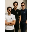 Erkek 3'lü Paket Tişört Rahat Kesim %100 Pamuklu Polo Yaka T-shirt Siyah-lacivert-beyaz 410